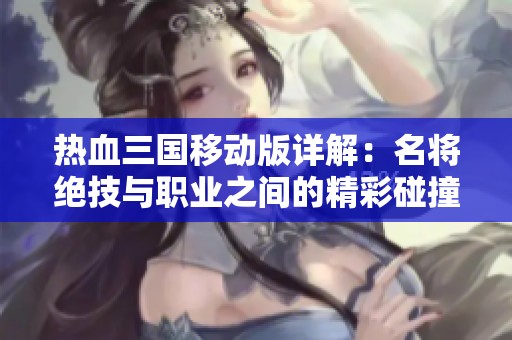 《热血三国移动版》是一款以三国时期为背景的策略类手游,游戏中的名将、职业以及绝技系统构建了一个丰富多彩的游戏世界。玩家不仅可以感受到历史情节的碰撞,还可以在游戏中运用策略,通过精妙的组合来击败对手。本文将详细解析名将的绝技与职业之间的精彩互动与策略运用。