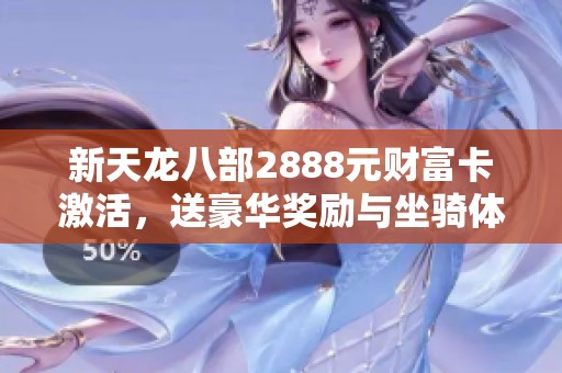 在如今的网络游戏中,《新天龙八部》凭借其独特的武侠魅力与丰富的游戏内容,吸引了无数玩家的热情参与。最近,为了回馈广大玩家的支持与热爱,官方推出了一款特别的2888元财富卡。这一财富卡不仅可以激活丰厚的奖励,玩家还将获得独特的坐骑体验,这无疑为玩家的游戏之旅增添了更多乐趣与期待。